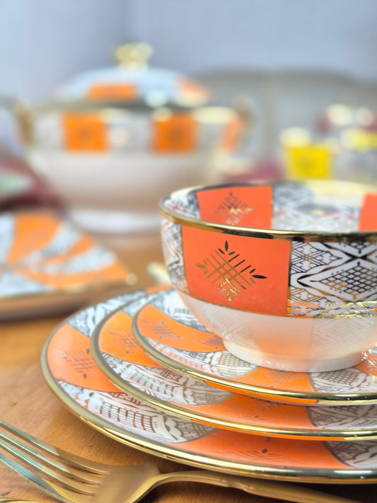 Service De Table Beldi Marocains – 25 Pieces _Motifs Traditionnels & Finition Dorée