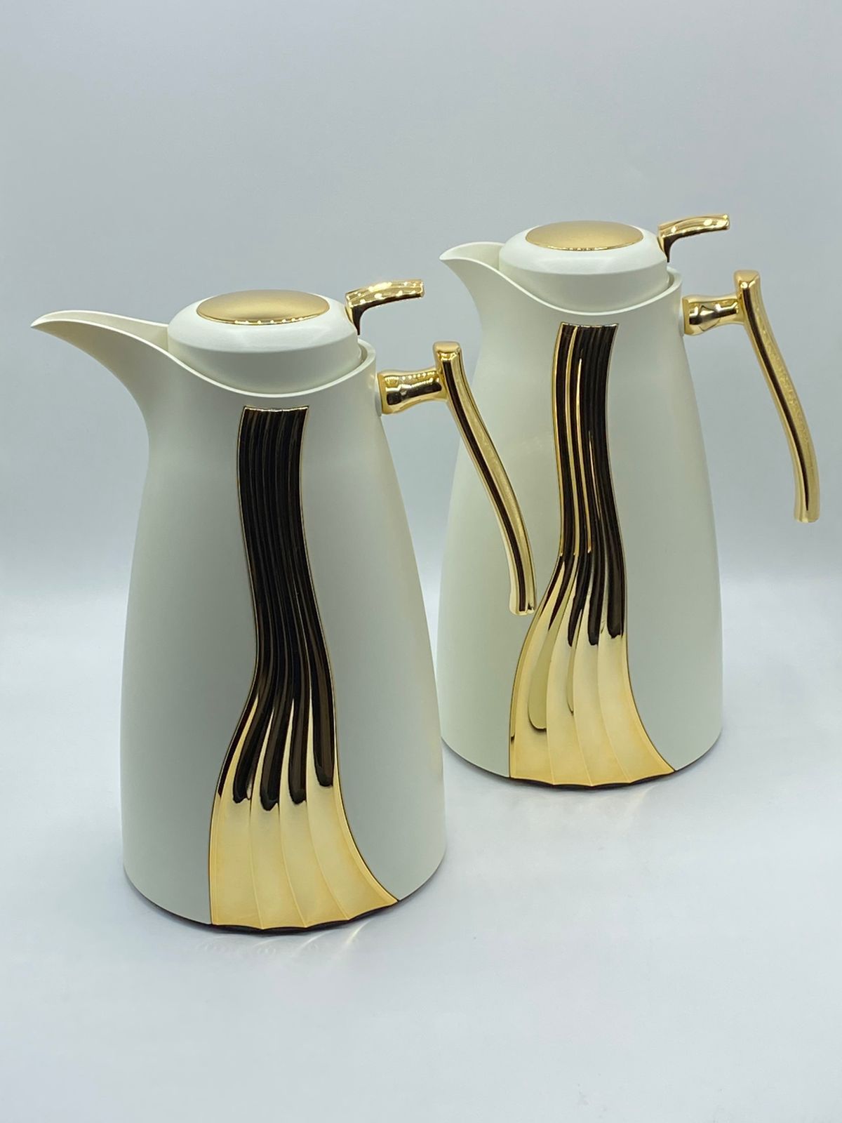 صُنعت كل ترمس بعناية فائقة بلمسة نهائية ذهبية فاخرة، مما يوفر مظهرًا أنيقًا وراقيًا، وهو مثالي لإضفاء لمسة جمالية على طاولتك خلال حفلات الاستقبال، ورمضان، والحفلات، والمناسبات الخاصة.