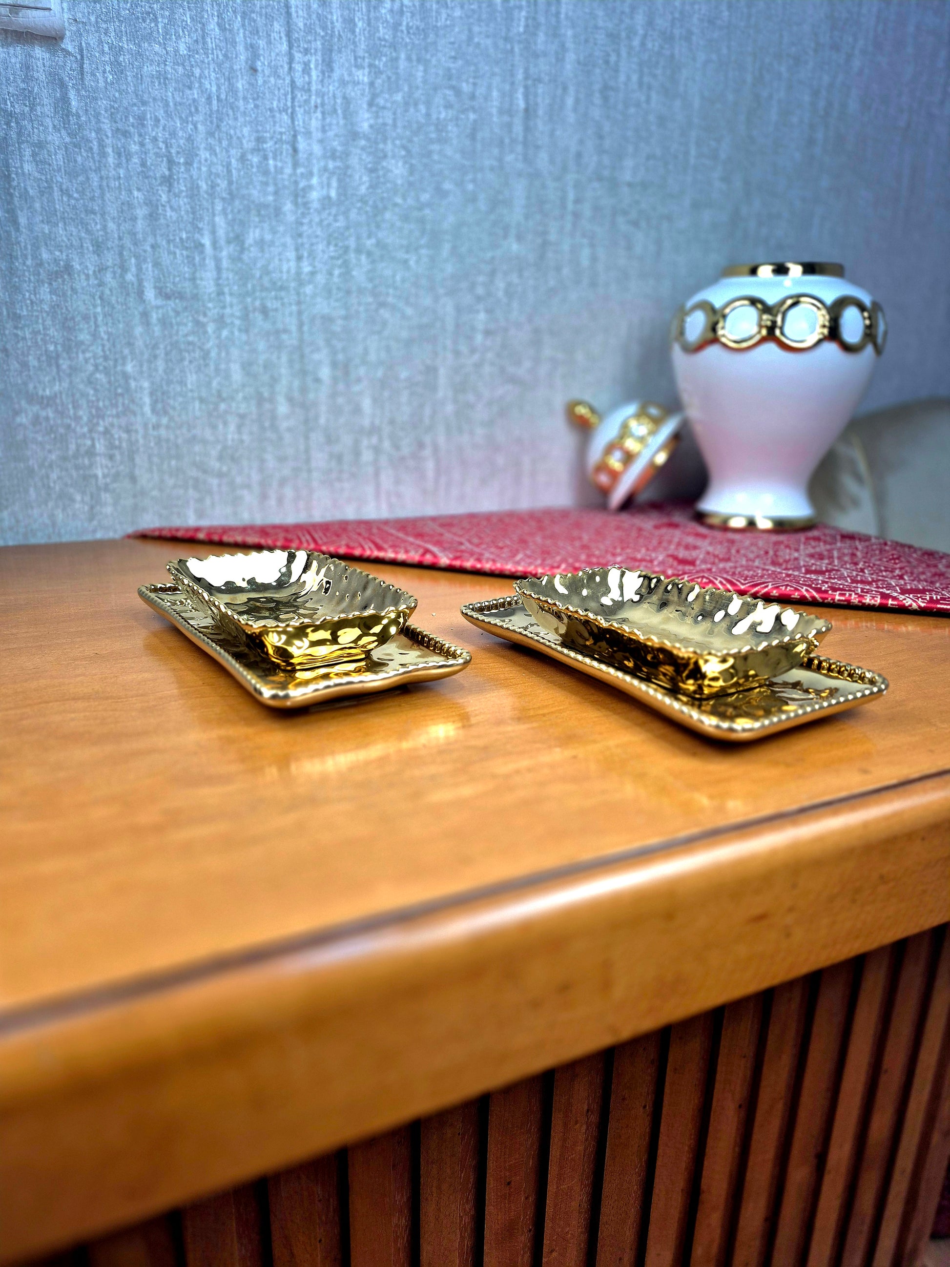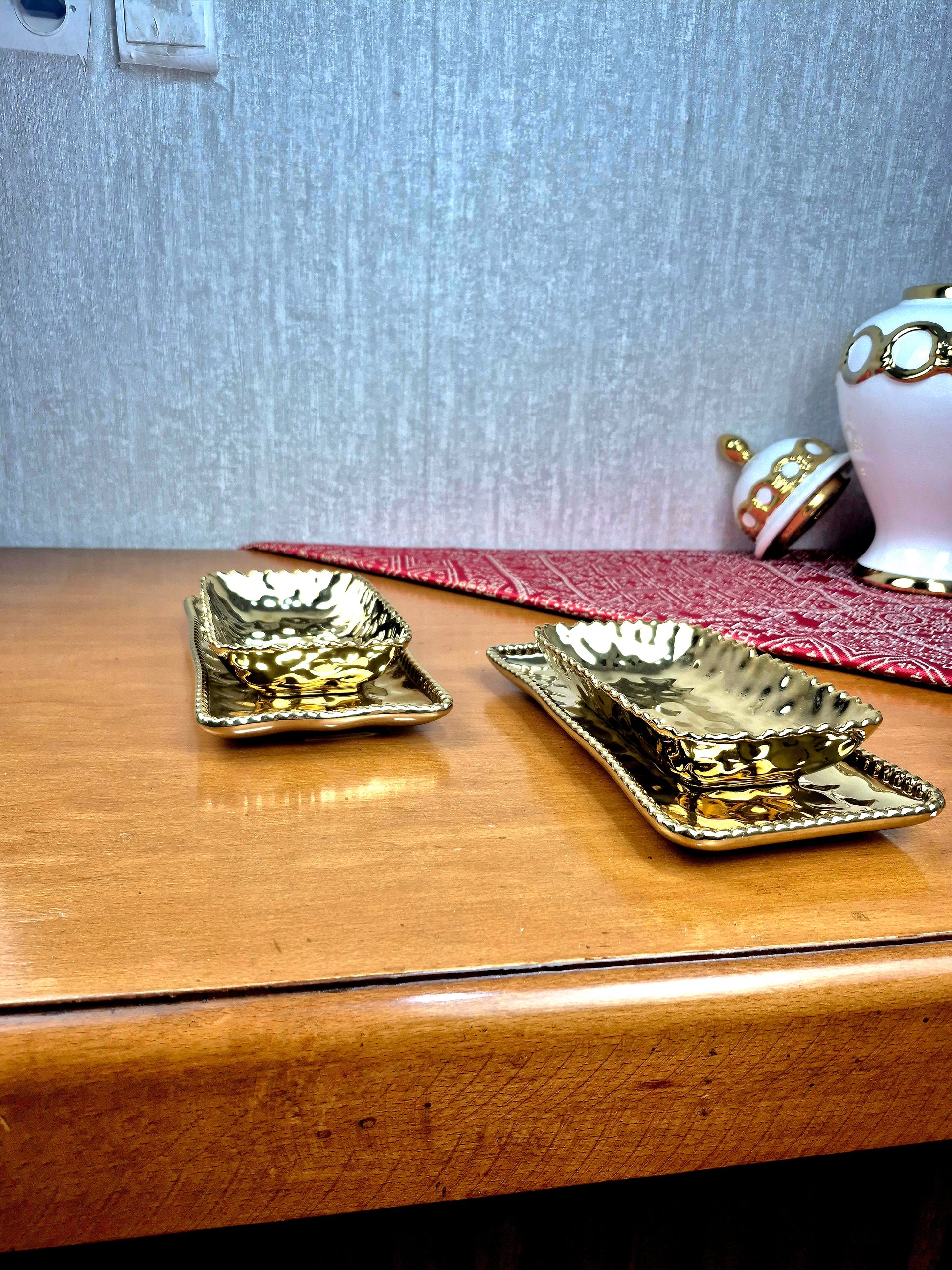 Duo Assiettes & Bols Rectangulaire Dorés – Décoration & Service Chic | Maroc _ Par Unité