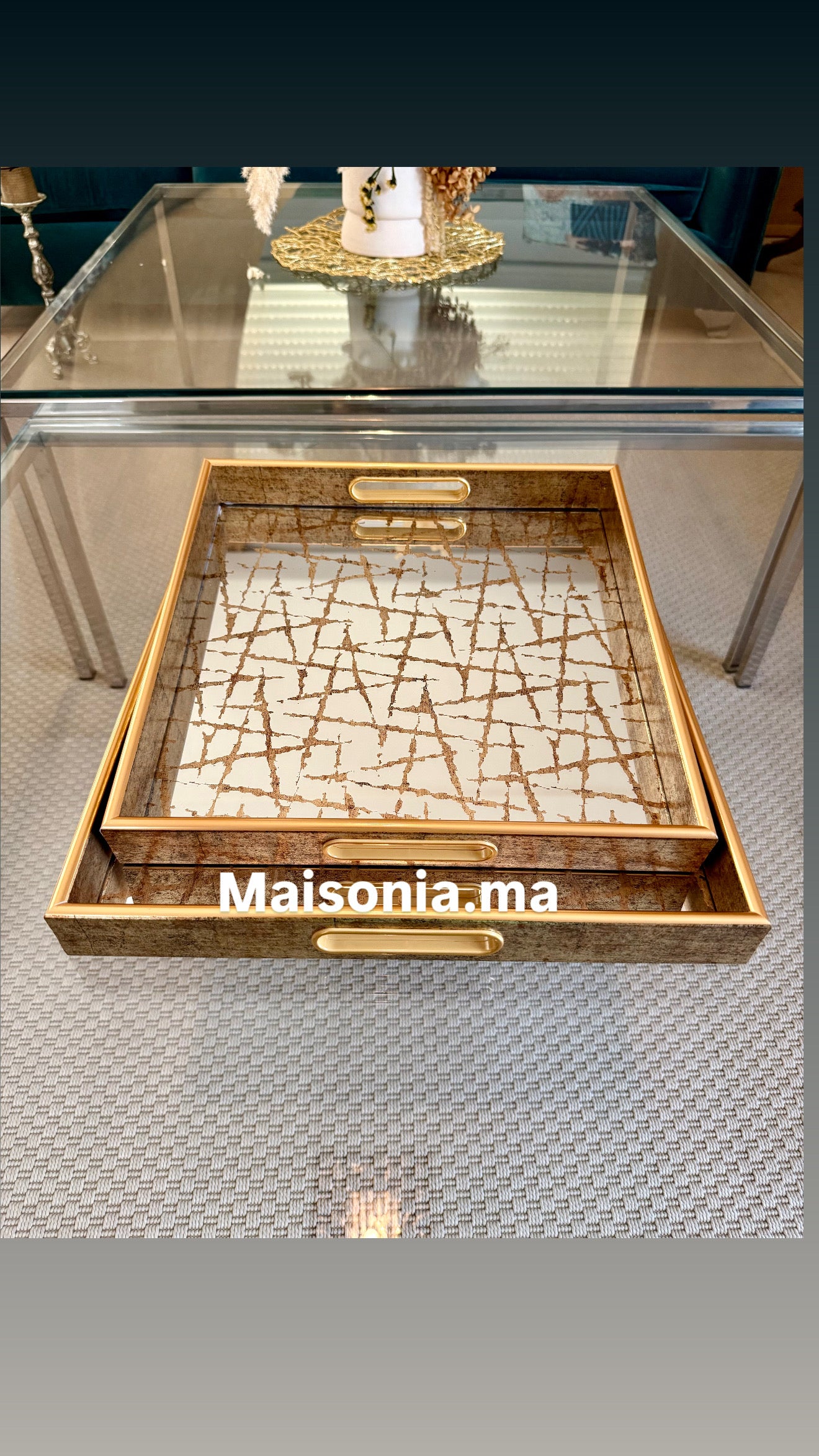 Duo plateau en bois et miroir : élégance, reflets et authenticité.